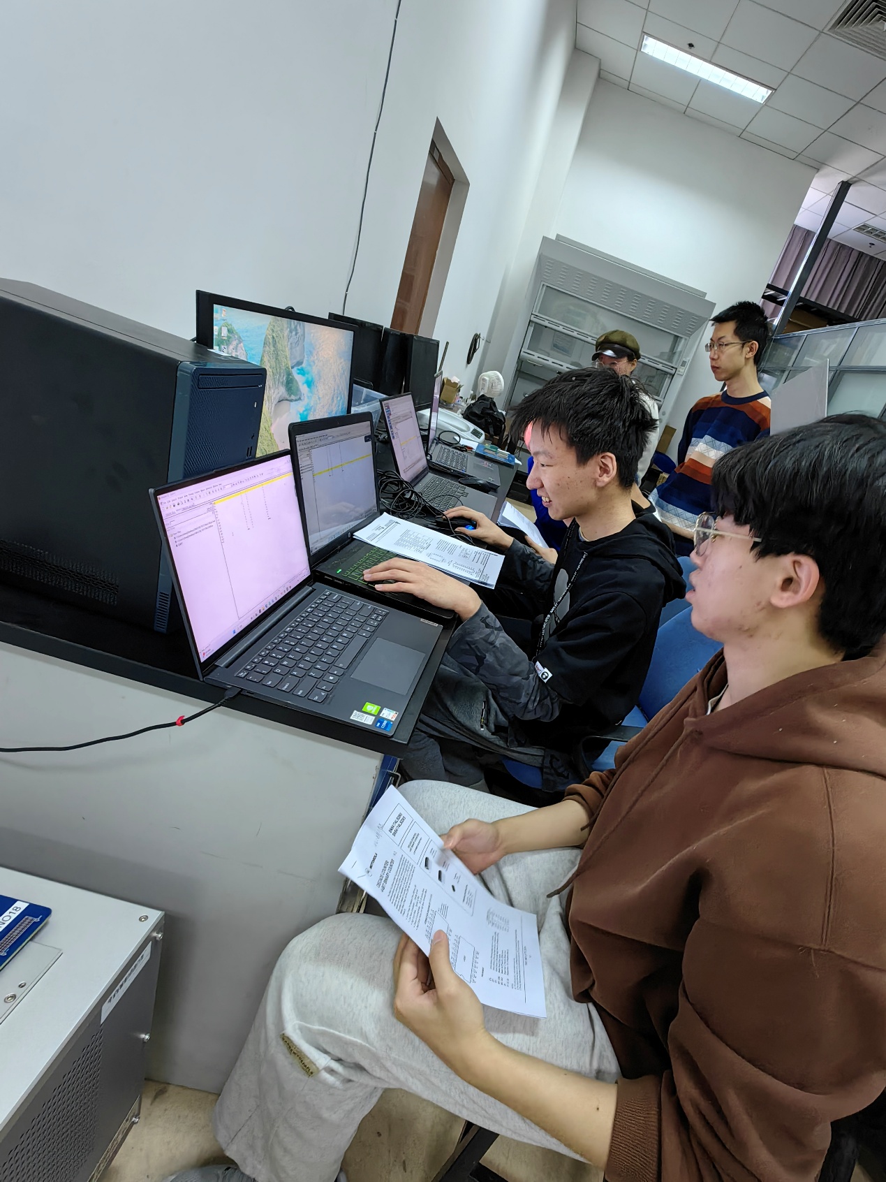 基于自测所最新研制的BC3192EX超大规模集成电路测试系统,刘工设计了丰富的测试编程样例,现场检验学生对芯片数据手册的理解程度并耐心指导测试向量编写,确保每位学生真正理解毕业设计的内容与目标。刘工还详细讲解了BC3192EX测试系统的结构、工作原理以及测试程序的编写方法。学生们现场逐一使用BC3192测试机进行了芯片的测试。课程内容以毕设项目为任务驱动,以夯实学生编程基础,提高学生的集成电路测试技术和解决问题的能力为目标,将测试工程师级标准的能力培养融入毕设的实践过程,有效整合测试企业、学院集成电路测试特色课程群、超大规模集成电路测试平台三方资源,培养企业能用,好用的应用型人才。