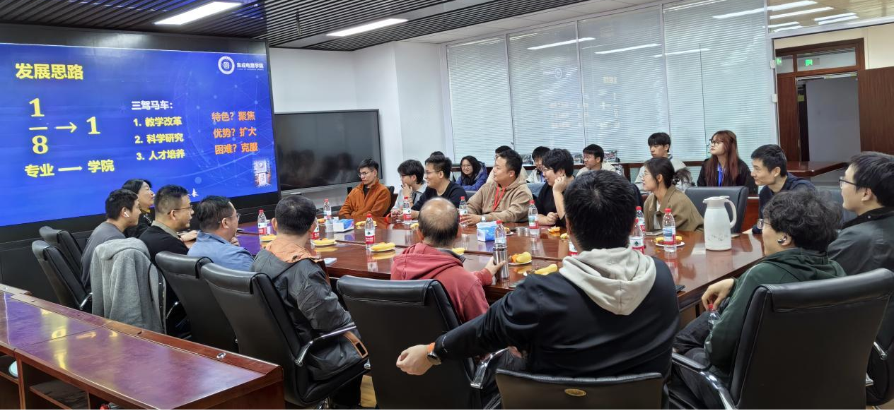 在随后的自由交流环节,现场氛围达到高潮。校友们逐一分享所在企业的业务领域与个人职责,既有深耕芯片设计、制造、封装测试等产业链关键环节的“老将”,也有聚焦AI芯片、光子计算等新兴赛道的“新锐”。围绕“如何加强校企合作”这一核心议题,大家畅所欲言,提出了诸多具有实操性的方案与建议。现场实现资源精准对接,多个合作意向初步达成——部分校友企业提出的非标简易开发需求,经学院实验室团队快速响应后既解决技术难题,又为毕业生创造实践机会。与会校友一致赞同支持定期举办聚焦“企业行业特性、产品定位方向、服务对象需求”等专题的“产教融合论坛”,将其打造为校企常态化沟通的品牌平台,持续释放资源互补的叠加效应。